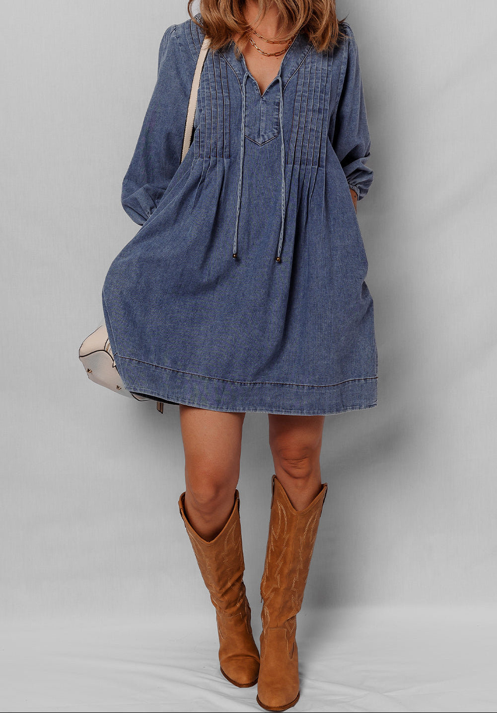 Autumn Tied Pleated Mini Dress