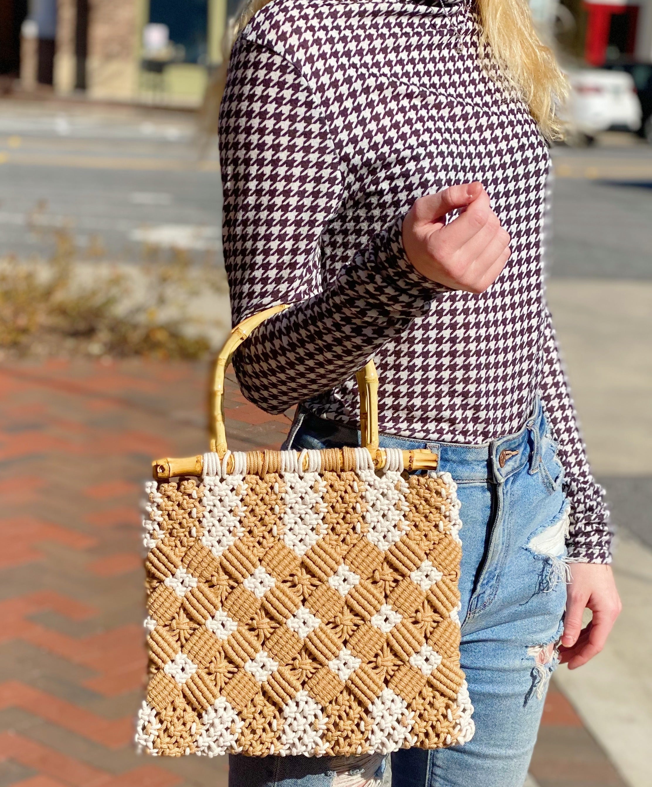 Detailed with beautiful bamboo handles and durable woven material. Classy neutral colors in patterned weaving looks absolutely luxurious and one... Read more