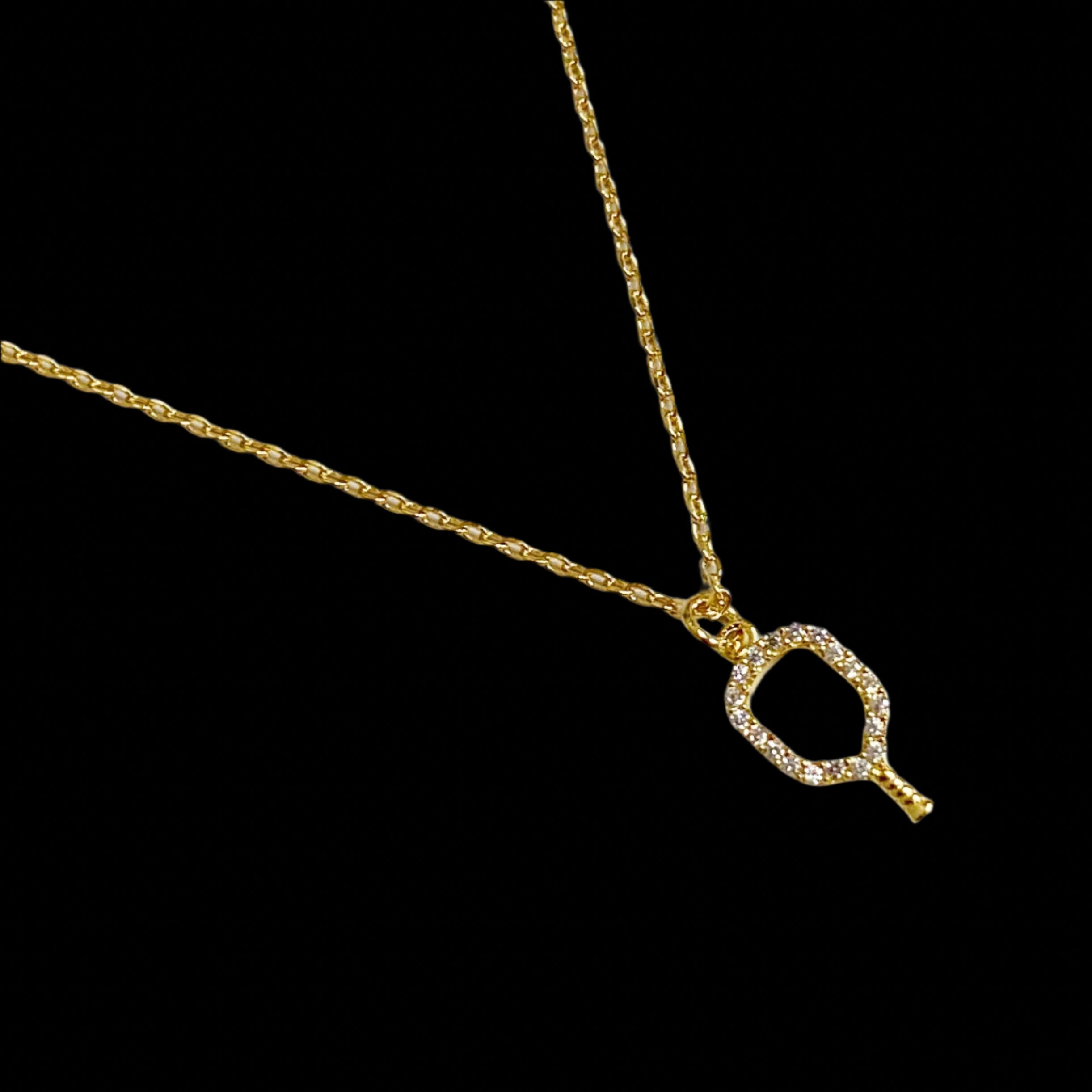 This dainty necklace will add a touch of sparkle to any outfit. Its pickleball racket outline shape is light and elegant, creating a subtle look that is sure to please any pickleball fan. Crafted with small and simple details, this necklace is sure to make a stylish addition to any wardrobe.