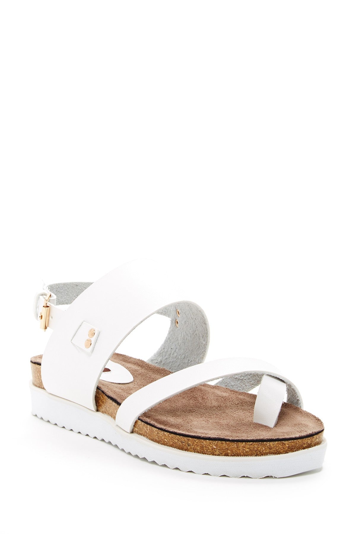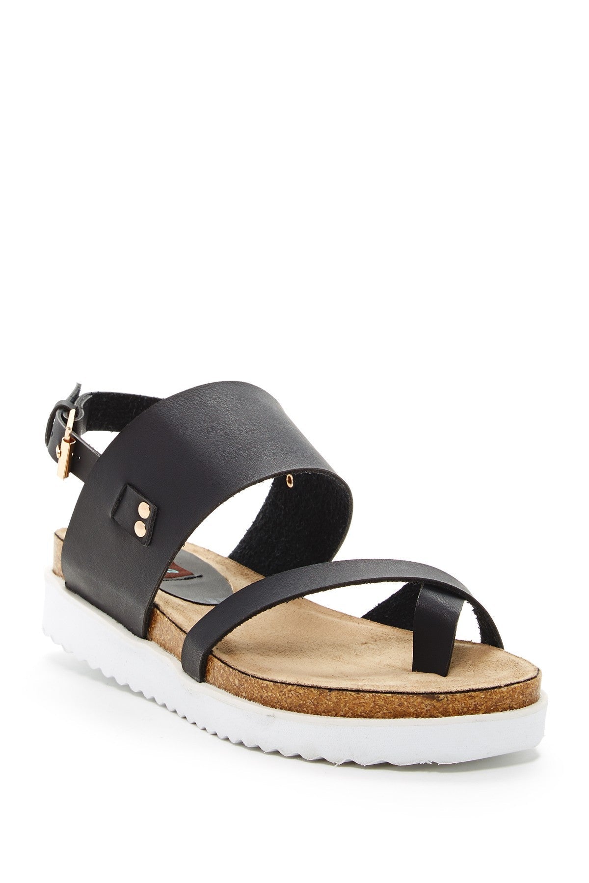vegan PU leather strap sandal footbed insole side buckle Read more