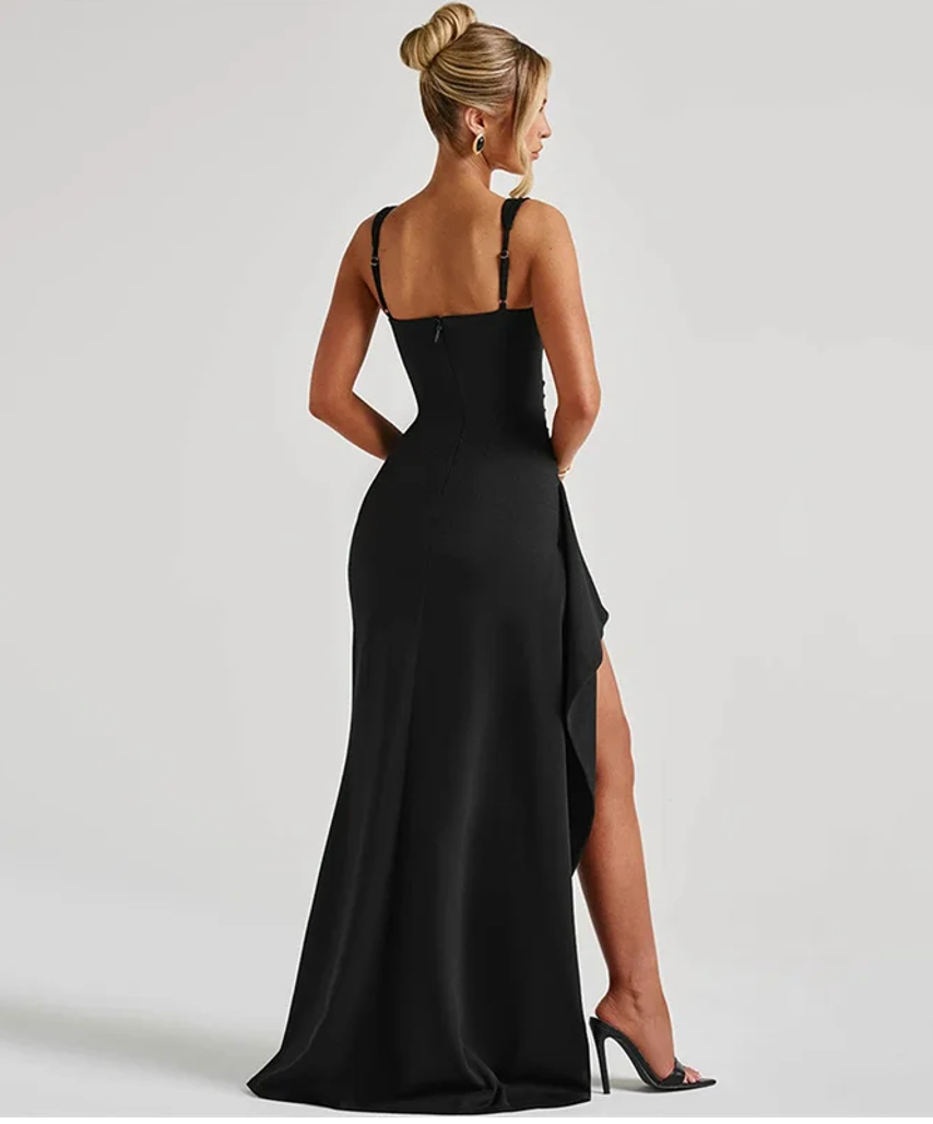 Elegant Spaghetti Strap Dress With Thigh High Split