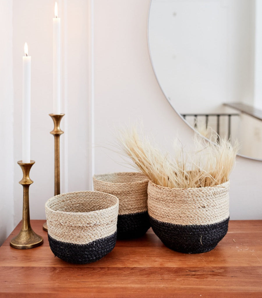 Handwoven from Jute, Naiya Bin comes in three different sizes. Jute's raw texture with soft black's simple design will add natural warmth to your space. Each product is designed and curated by Korissa, sustainably handmade by Fair Trade artisans in Bangladesh.