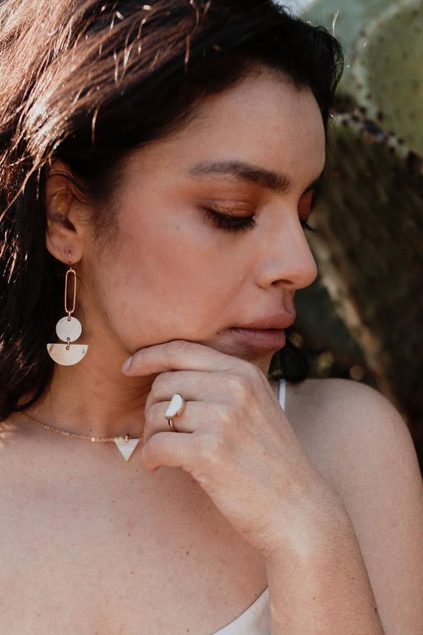 A Studded Sustainable Statement, this Nho Be Mini Triangle Charm Necklace with 16K gold-plated brass chain. Since each charm is... Read more