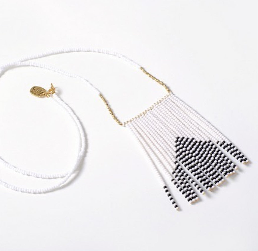 Stay on trend and add a touch of bohemia to any outfit with this beaded tassel necklace. Materials: White, black +... Read more