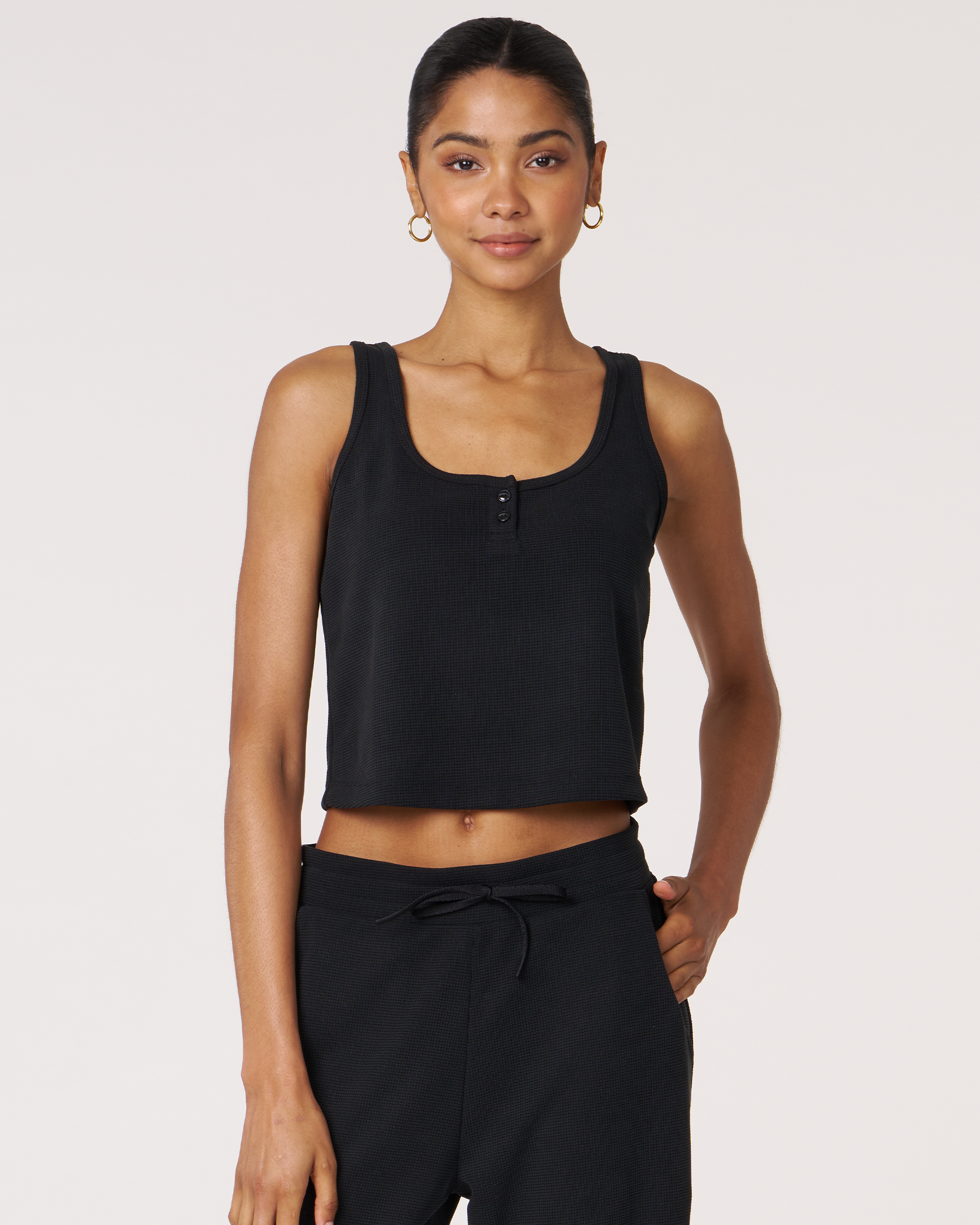 Unwind in style in our Retreat Pocket Waffle Tank. This perfect crop length tank features a button down and a... Read more
